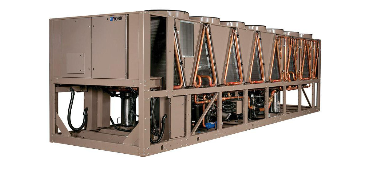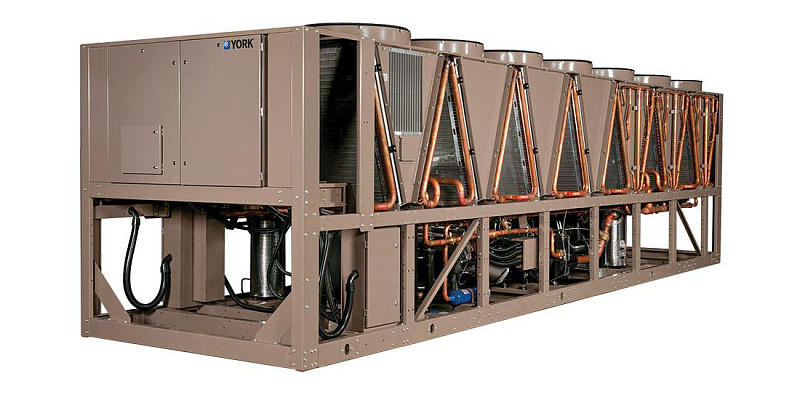 Холодильные машины могут оснащаться как осевыми, так и центробежными вентиляторами для охлаждения воздушного конденсатора. Чиллеры с воздушным охлаждением конденсатора оборудуются пластинчатыми или кожухотрубными теплообменниками испарителя. Пластинчатые варианты имеют малый вес, эргономичную форму и высокий коэффициент теплопередачи, а кожухотрубные агрегаты более надежны в эксплуатации.
